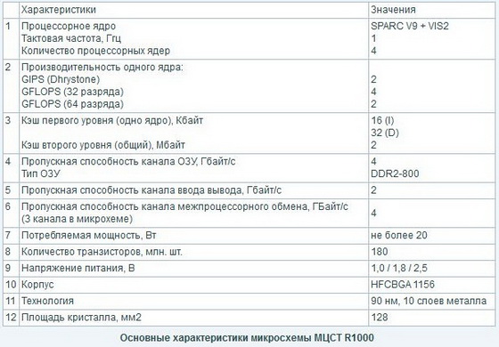 При создании микросхемы «МЦСТ-R1000» (в процессе проектирования и испытаний обозначалась как “система на кристалле «МЦСТ-4R», микросхема 1891ВМ6Я”) были достигнуты уникальные для отечественных разработок показатели — микросхема спроектирована по технологическим нормам 90 нм, содержит 4 процессорных ядра, работает на тактовой частоте 1 Ггц.