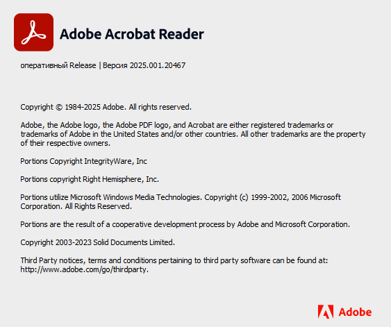 Скачать программу Adobe Acrobat Reader DC 2025.001.20997 (487,83 МБ):