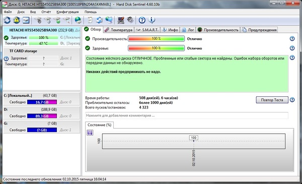 Работает в фоне и постоянно проводит анализ ситуации. В случае выявления ошибки или превышения порога определенных параметров, указанных пользователем, выведет предупреждение. В большинстве случаев на помощь приходит именно технология S.M.A.R.T., так как это один из наиболее быстрых и простых способов отследить изменение особо важных или критических параметров накопителей.