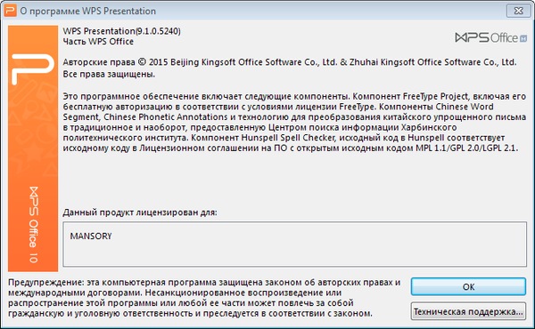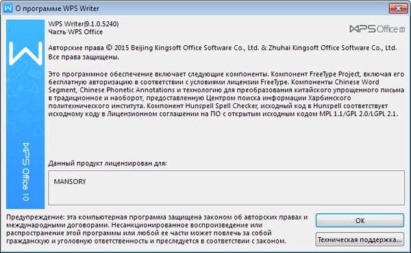 Скачать программу WPS Office 2015 Premium 9.1.0.5240 (70,08 МБ):