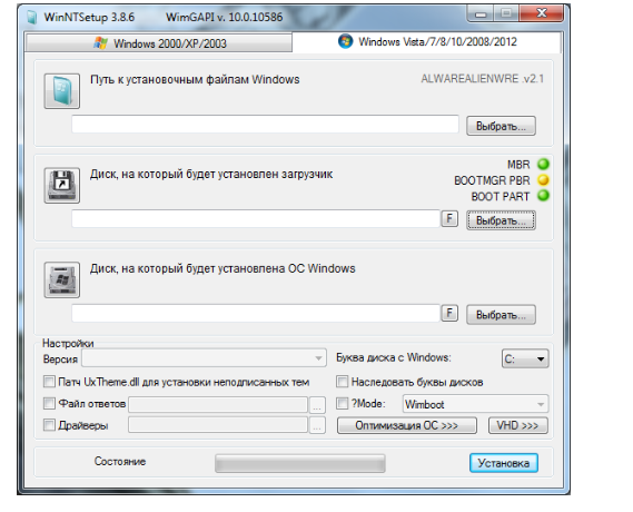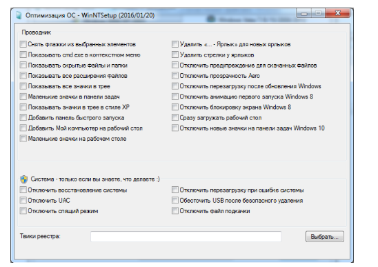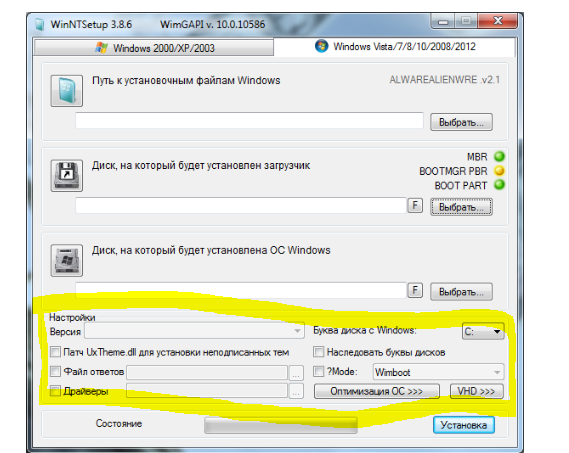 Ввиду того, что мы удалили файлы конфигурации от A.L.E.X, оставив чистые Install.wim/Install.Esd, вы не получите отключенный UAC. Поэтому по вкусу расставляйте все подряд в поле "Настройки".