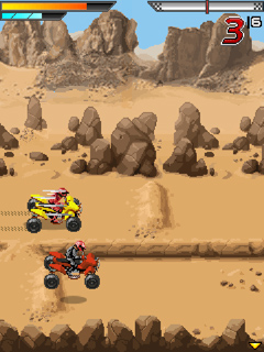 Игра для мобильных телефонов. Хочешь узнать, что испытывают квадроциклисты – представители одного из самых зрелищных видов экстремального спорта? Они хорошо знакомы с чистым, незамутненным блеском победы. Размеры экранов: 128х128, 128х160, 132х176, 176х208, 176х220, 208х208, 240х320, 320х240, 352х416.