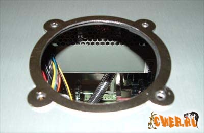 Если у вас в верхней стенке корпуса нет блоухола, то его необходимо сделать. Самый распространенный способ – воспользоваться дремелем. Также пригодится гриль для вентилятора. Его центральную часть вырезаем тоже при помощи дремеля. Края среза можно обработать наждачной бумагой.