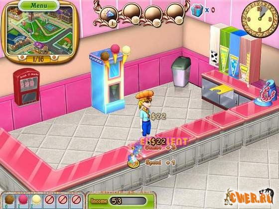Вы даже можете исследовать новые рецепты мороженого, улучшать оборудование и обстановку, чтобы построить свою непревзойдённую Империю Мороженого!