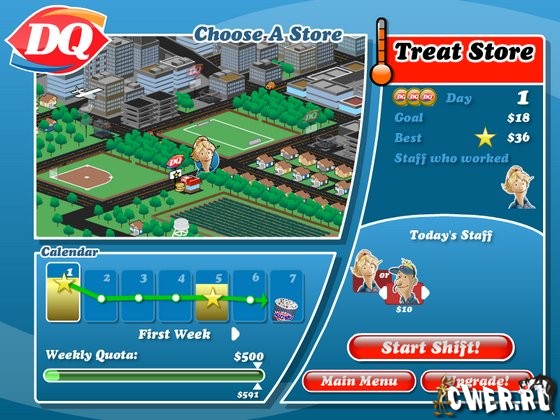 Когда рекордная жара охватывает город, Эмили устраивается на работу в местный магазинчик Dairy Queen. При помощи деловой хватки и имея в своём распоряжении большой выбор прохладительных напитков и мороженого, вам предстоит помочь Эмили стать самым успешным управляющим в городе. Управляйте сетью магазинов Dairy Queen, модернизируйте оборудование, нанимайте работников, ну и, конечно же, следите за развитием бизнеса.