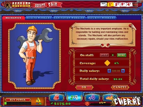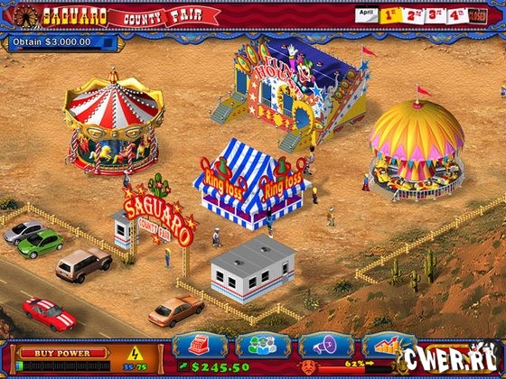 County Fair сочетает в себе два типа игры - тайм-менеджмент и стратегию. Сумейте позаботиться о развитии своего ярмарочного бизнеса. Украшайте ярмарку аттракционами, игровыми стендами и различными достопримечательностями. Продавайте посетителям различные деликатесы, нанимайте рабочий персонал. Также вам придется правильно распределять прибыль и заказывать рекламу для того, чтобы увеличить количество посетителей.