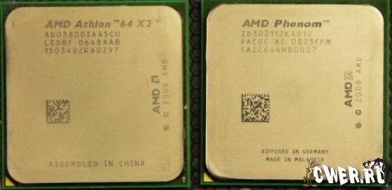 Опознать исполнение Socket AM3 можно по отсутствию двух контактов на "брюшке" процессора (на фото справа):