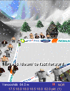 Игра для мобильных телефонов. Симулятор лыжных прыжков с потрясающей 3D графикой, реалистичной физикой полета, и динамической системой камер. Размеры экранов: 240х320.
