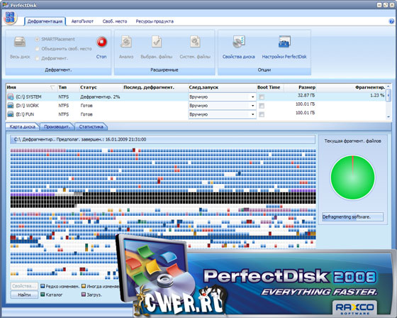 Скачать Raxco PerfectDisk 2008 Build 76 + русификатор (38,8 МБ):