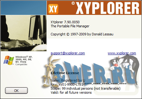XYPlorer - продвинутый файловый менеджер, работающий под Win98/NT/ME/2000/XP/Vista, достойная замена проводнику Windows, с поддержкой вкладок. Мощный поисковый механизм; предосмотр мультимедийных файлов , графики, аудио, видео; HEX и ASCII просмотрщик файлов; работа с mp3-тегами; широкие возможности для визуализации (выделение цветом избранных папок и пр.); формирование фильтров отображения файлов; экспорт информации о файлах в CSV формат и многое другое. XYplorer не оставляет записей в реестре, поэтому возможна работа со сменных носителей, например с флеш носителях.