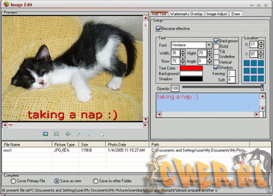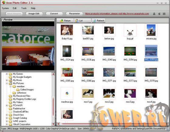 Aoao Photo Editor - пакетная обработка ваших фотографий. Программа может добавить к ним надпись или другой рисунок, развернуть их или переименовать все разом.