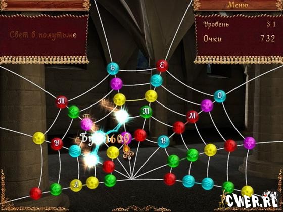 Идея игры проста. Для распутывания паутины необходимо собрать разноцветные шарики в группы по три и больше. На некоторых из них есть буквы. Убирая такие шарики в результате нужно собрать фразу, которая даст вам возможность пройти дальше и освободить весь замок. В процессе прохождения комнат замка вы будете находить магические предметы, заколдованные магическими заклинаниями. Их нужно расколдовать, собрав изображение предмета из кусочков.
