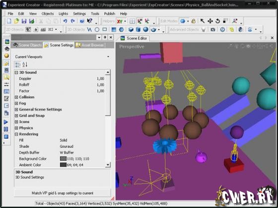 Esperient Creator - мощная программа для создания в реальном времени интерактивных 3D сцен и 3D игр, также она является WYSIWYG (What You See Is What You Get) - редактором, т.е. что Вы видите, то и получаете. Более тысячи компаний и ведущих 3D-дизайнеров выбрали этот продукт. Программа полностью удовлетворяет потребности при создании инновационных медиа 3D-сцен и 3D-игр.