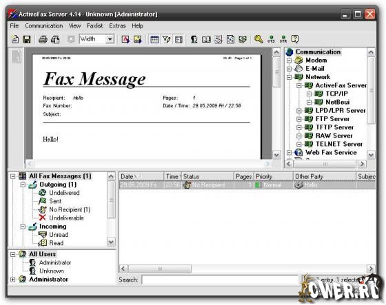 ActiveFax Server - один из лучших по функциональности факсов. Полный набор всех необходимых функций в отличие от программ подобного рода, у которых всегда чего-то да и не хватает. Программа обладает стабильностью и надежностью, безглючностью и хорошо лечится. Для индивидуального пользования можно установить только серверную часть, для общего - устанавливаются столько клиентских приложений, сколько нужно в офисе, чтобы у каждого на персональном компе была возможность работать индивидуально. Очень хорошо организована передача факсов через e-mail - программа автоматически подключается к интернету, передает факс через сервер Вашего провайдера, отключается и опять выходит на простую телефонную линию - одним кликом и все это в скрытом режиме. Можно задать передачу по обеим каналам (телефонная линия и/или интернет) для подстраховки.