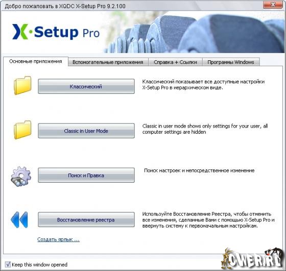 X-Setup - мощная программа для тонкой настройки более двух тысяч скрытых параметров операционных систем семейства Windows. Начиная с этой версии, программа стала поддерживать новую Windows 7. В Windows имеется множество скрытых параметров, а также множество приложений, к которым, как правило, нет быстрого доступа и вы не можете изменить настройки этих параметров. Эта программа позволит вам быстро и легко изменять скрытые от пользователей системные параметры. При этом, X-Setup позволяет настраивать не только общие для всех разновидностей Windows параметры, но и имеющиеся только у тех или других окон. Кроме того, можно настроить Windows на оптимальную работу с популярными видеокартами. В отличие от многих других подобных программ, изменение настроек производится с помощью мастера с довольно подробным описанием изменяемого параметра. Для избежания краха системы, в программе имеется функция отката к предыдущим системным настройкам.