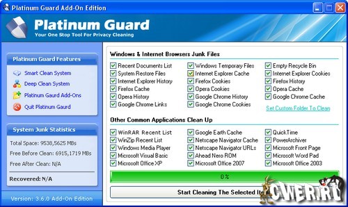 Platinum Guard - это программа, которая помогает удалять временные и ненужные файлы с вашего компьютера, что позволяет ему работать быстрее. Вы сможете удалять информацию, которая хранится как история в любом браузере (Internet Explorer, Firefox, Opera, Google Chrome) или историю других приложений всего одним кликом мыши.