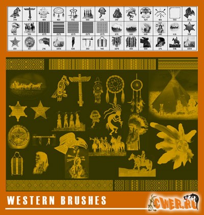 40 элементов на тему вестерна, индейцев и шерифов пристойным размером от 500 до 1500 пикселей