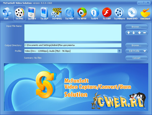 McFunSoft Video Solution - является конвертером между AVI, MPEG, MPEG 1, MPEG 2, MPEG 4, VCD, DVD, SVCD, RMVB, RM, WMV и другими видео форматами.