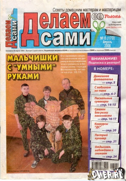 Делаем сами - журнал о народных промыслах стран мира, помогает начинающим умельцам, в том числе и детям, в изготовлении полезных вещей для дома. Особое внимание уделяется материалам по обработке древесины, изготовлению мебели и других предметов интерьера.
