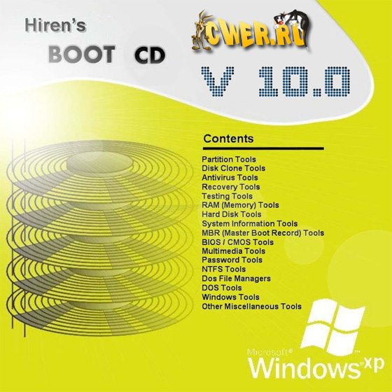 Добавлено в образ Mini Windows XP, полные версии продуктов от Acronis: русский Disk Director Server 10.0.2169 и True Image Echo Ent Server 9.7.8206. На одном загрузочном CD собраны десятки самых популярных программ и утилит для работы в режиме DOS. Это утилиты для работы с жестким диском, его восстановления и диагностики, утилиты диагностики всех узлов компьютера, файловые менеджеры, утилиты для работы в сети, а также многие другие. Hiren's BootCD избавляет от необходимости держать под рукой десятки и десятки дисков с необходимыми в ежедневной работе программами.