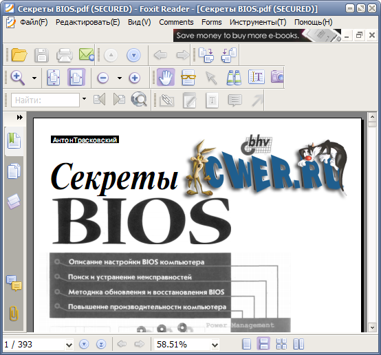 Foxit Reader - профессиональная программа для чтения PDF файлов. Особенностью Foxit PDF Reader является сравнительно небольшой размер дистрибутива (3 Mb) и быстрая скорость работы, что, несомненно, сказывается на удобстве программы в целом. Эта утилита не требует долговременной инсталляции. Представленный продукт не требователен к программным и аппаратным средствам компьютера. Программа обладает всеми необходимыми функциями для полноценного просмотра PDF файлов. Доступны такие возможности как: выбрать и скопировать содержание текста с файлов PDF, производить поиск по тексту, будет доступна очень удобная библиотека для поиска и управления PDF файлами, быстрая скорость распечатки документов, поддержка Javascript, поддержка плугинов и многое другое. Работает во всех операционных системах Windows.