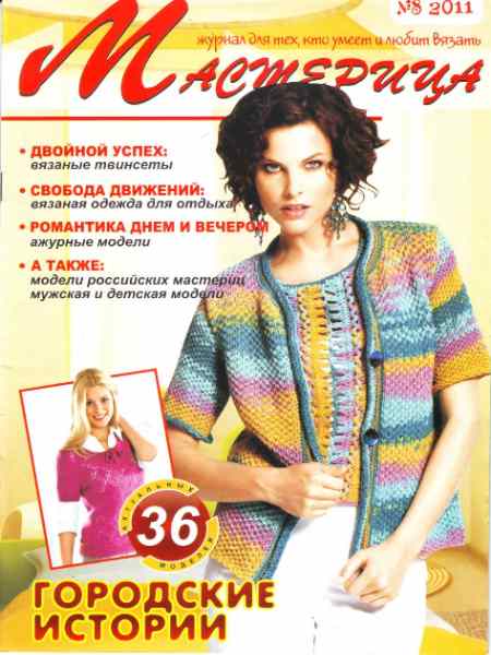Украинский журнал по вязанию с подробными схемами и описанием 20 моделей от европейских дизайнеров. Летние шарфы и шали, кофточки, джемпера, короткие и длинные жилеты, туники и платья – прекрасные фасоны, интересная пряжа, практичность и оригинальность.