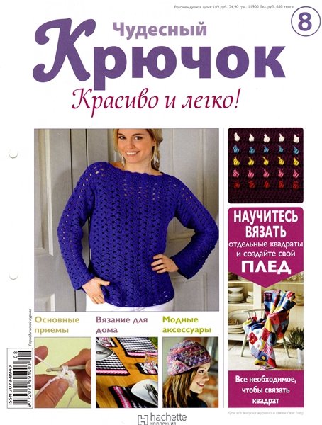 Коллекция «Чудесный крючок. Красиво и легко!» — это простой и доступный способ освоить искусство вязания крючком. С каждым номером вы сможете научиться различным способам вязания крючком, а также познакомитесь с новым узором, выполнение которого представлено пошагово с помощью простых объяснений и фотографий. В каждом выпуске предлагаются прекрасные модели для вас и вашего дома. Откройте в себе талант и познайте радость творчества! Регулярно получая описания простых в исполнении моделей, вы соберете собственную коллекцию.