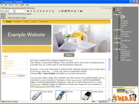 EZGenerator Website Builder - программа предназначена для создания веб-сайтов, ориентированная на домашних пользователей и на организации, желающих быстро и легко сделать собственный привлекательный сайт. Вы давно мечтали создать свой сайт (страничку, блог, интернет-магазин, фотогалерею), но у вас нет навыков, времени и денег для реализации своей мечты? Данная программа не требует знаний сайтостроения, но при этом обладает огромными возможностями для создания сайта профессионального уровня. Имеет простой и дружественный интерфейс, все операции выполняются с помощью мастера, простым нажатием кнопок, так что с ней справиться даже пользователь, для которого веб-дизайн кажется чем-то из области фантастики. Также программа содержит в себе множество готовых шаблонов для удовлетворения любого каприза и амбиций. Все что от вас требуется - всего-лишь внести в шаблон свои изменения (тексты, картинки и т.д.), все остальное программа сделает сама. Останется только дело за малым - найти для сайта достойный хостинг.