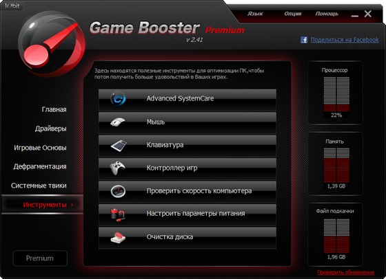 Game Booster - мощная утилита, которая настроит Ваш компьютер на максимальное быстродействие в играх, путем оптимизации многих параметров операционных систем Windows. Сочетание нескольких вариантов оптимизации (дефрагментация оперативной памяти и жесткого диска, диагностика конфигурации DirectX и др.) поможет полностью раскрыть потенциал Вашего компьютера. В арсенале любого опытного геймера можно обнаружить огромное количество утилит, которые позволяют повысить производительность игрового ПК. Многие из этих приложений не предполагают «разгона» аппаратных компонентов и обеспечивают прирост производительности за счет освобождения системных ресурсов и оптимизации работы ОС. Game Booster может дополнить собой указанную коллекцию полезных программ.